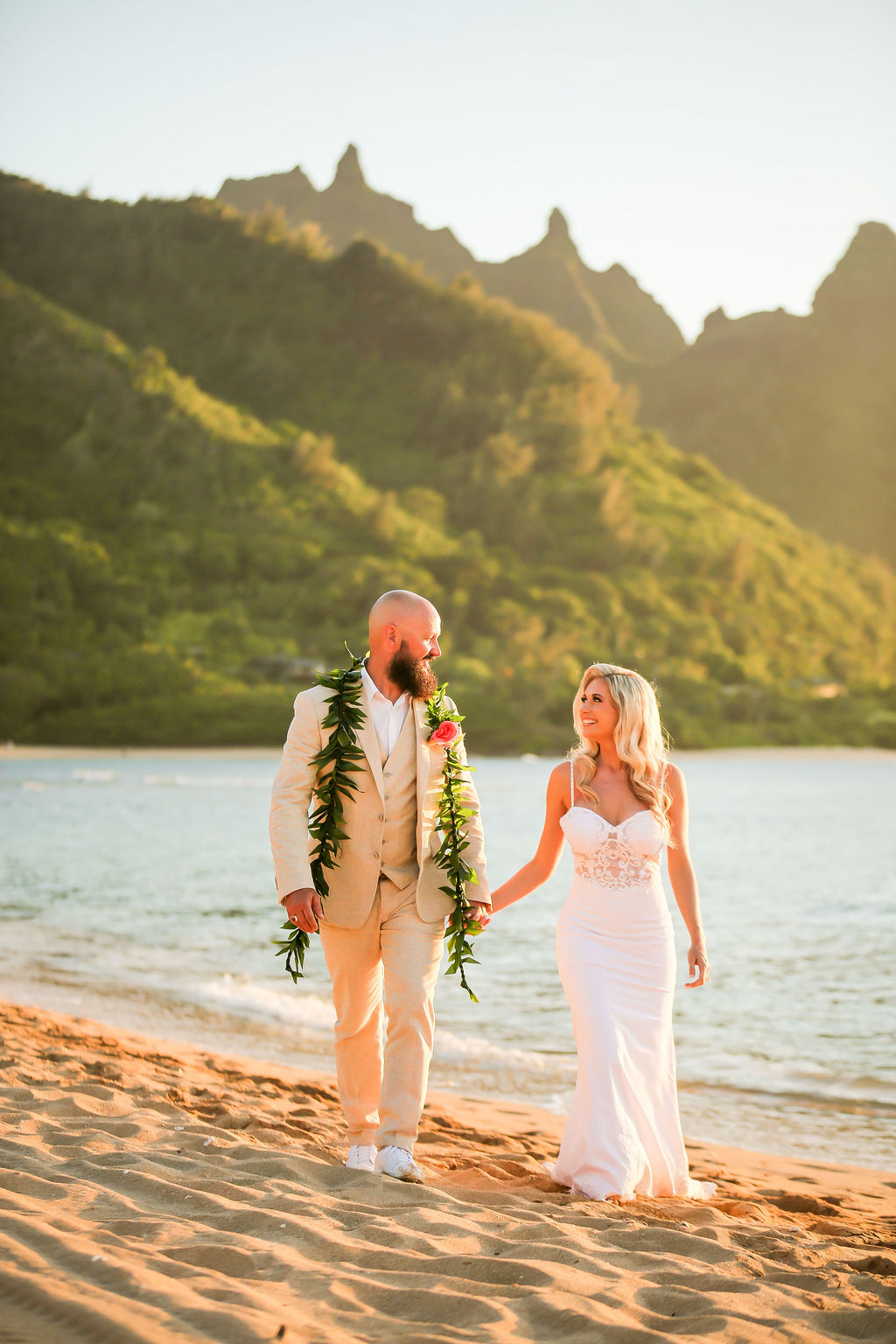 Golden hour on Hanalei Bay. Savoring every step, every wave, and every moment of this beautiful beginning on Kauai. 💍🌺 @ashsallyx
