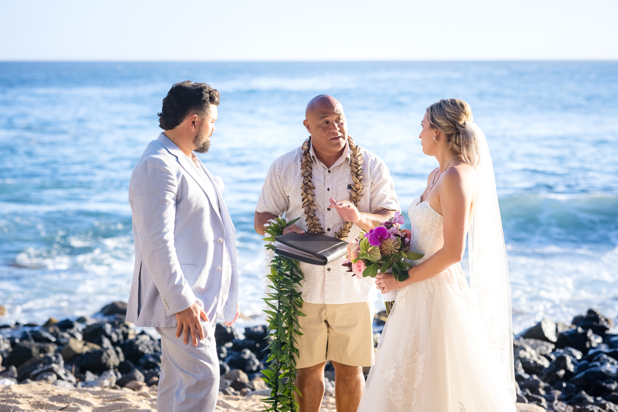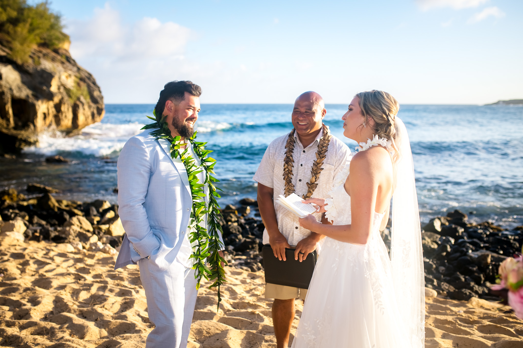 "The ceremony was absolutely incredible, everyone was so helpful and we had the best day!We loved our officiant, Moe. What he read to us at the ceremony was very meaningful and I was hoping we could have a copy of what he wrote. I’d love to frame it or do something special with it in our home. Kauai elopement’s made sure my husband and I had the best day of our life. They made everything super easy on us and no stress! They were always available for questions and very responsive. Every person on their team made our wedding day a fairytale. Highly recommend!" ~ Chelsea & Kevin