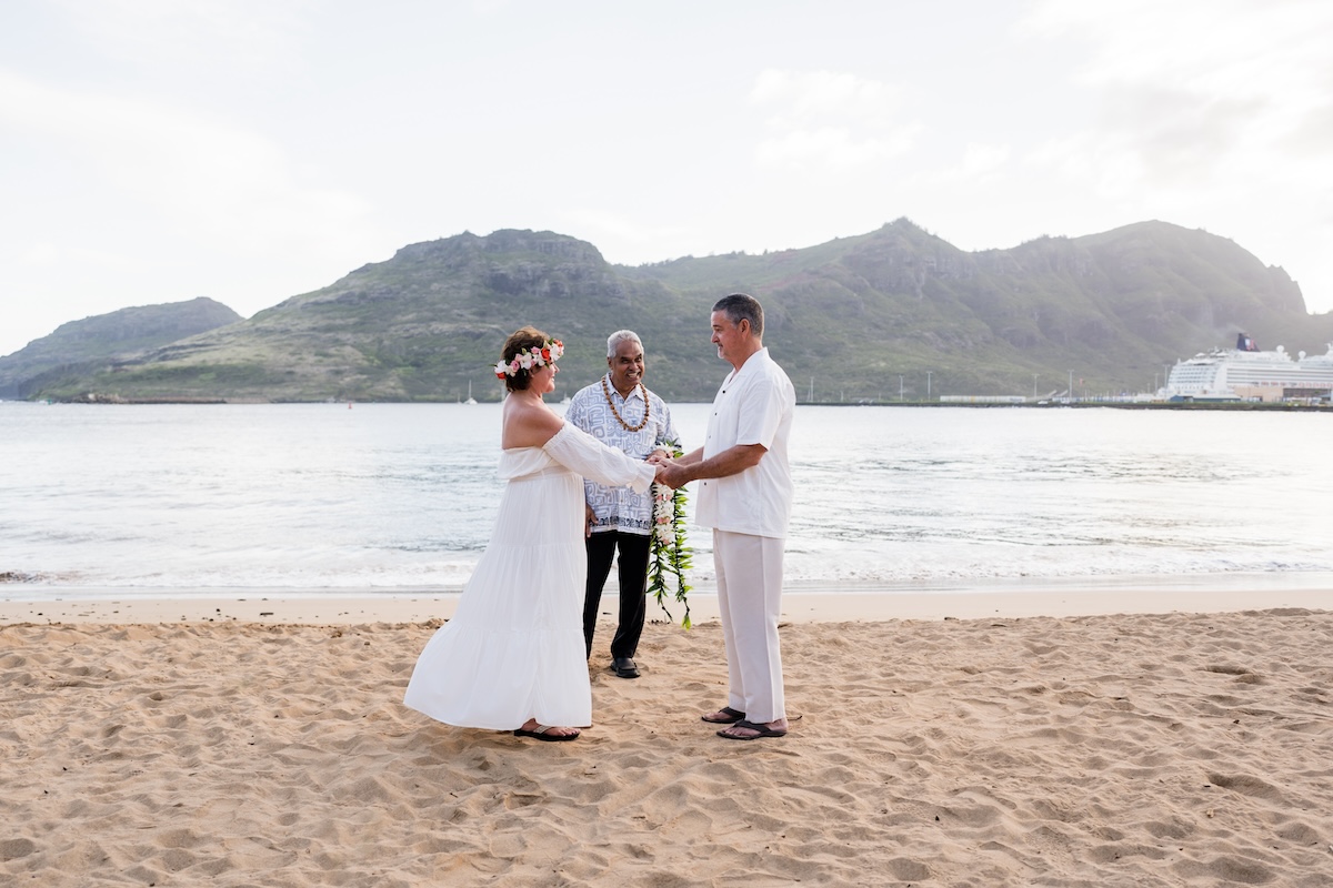 Happy 20th wedding anniversary vow renewal for Jeff and Mattie at Kalapaki Bay.