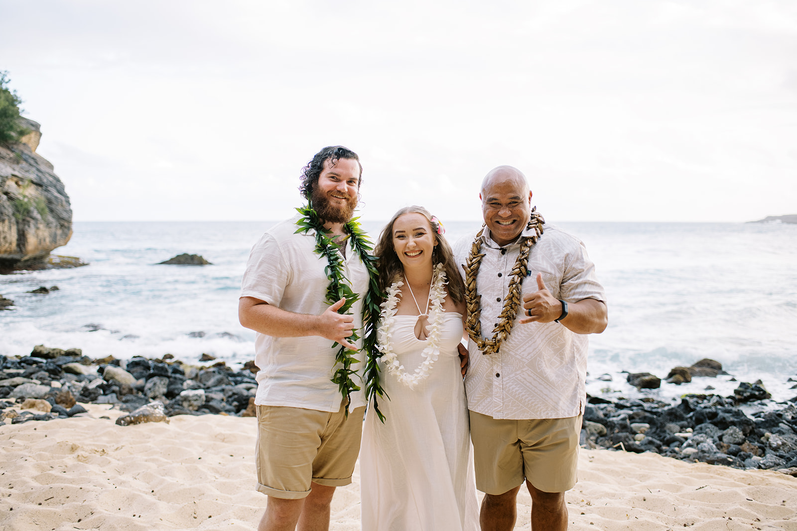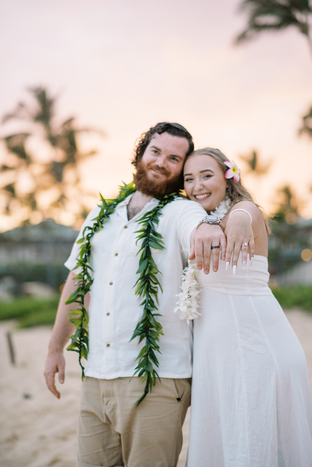 Beautiful May Sunset ceremony on Shipwrecks beach for Maggie & Clayton with Moe as their officiant and Nicolette for photography!