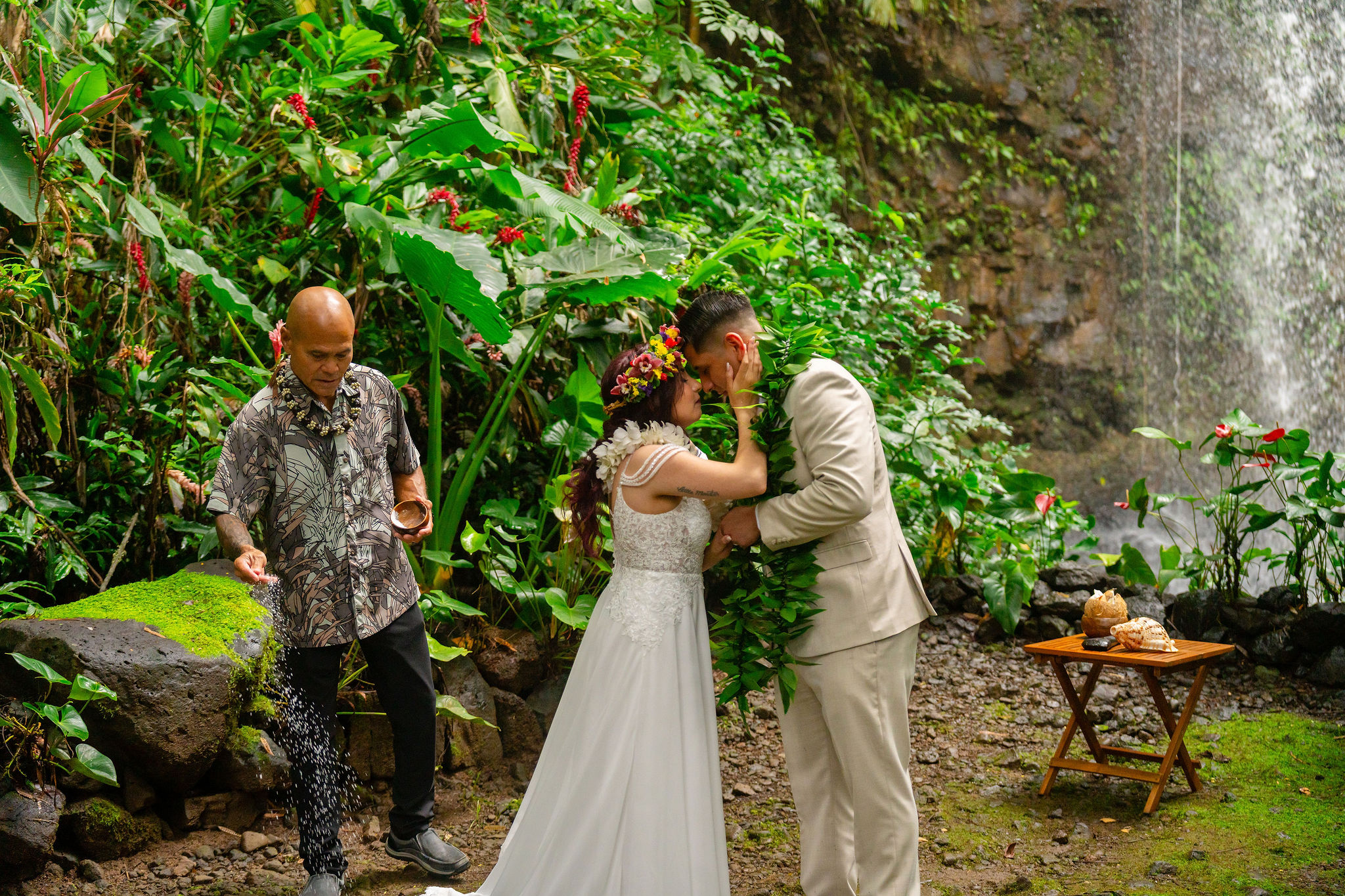 In the heart of the jungle, with a waterfall blessing their vows 🌿💧