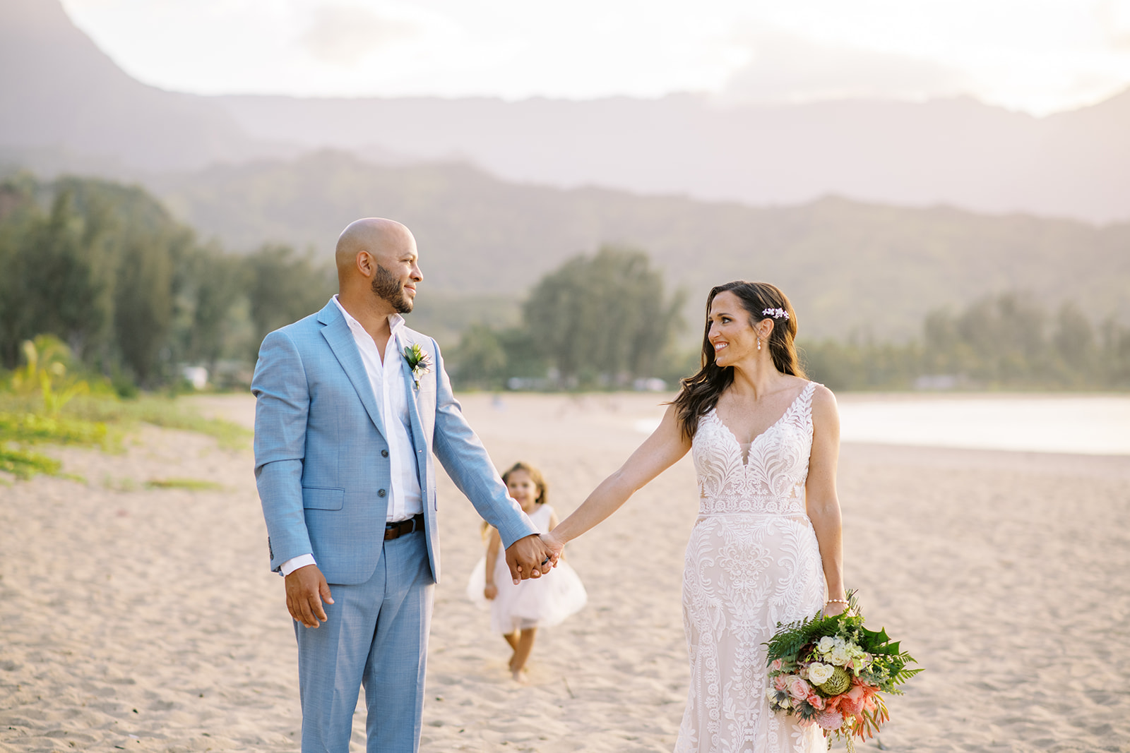 Nicole & Matt's sunset ceremony at Hanalei Bay