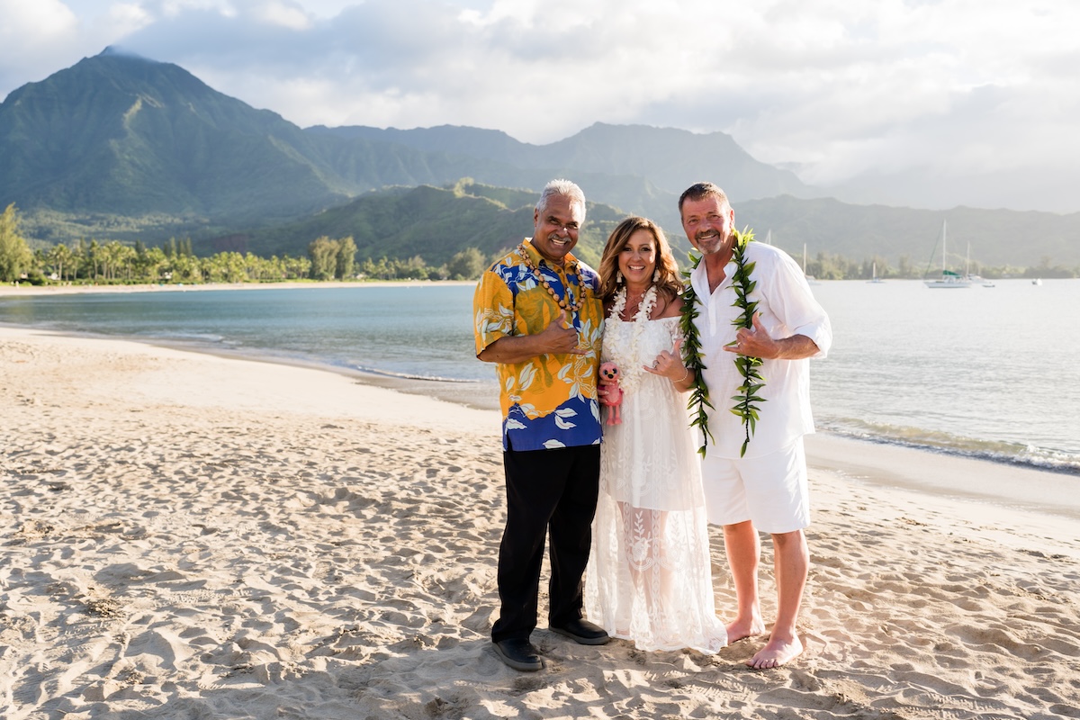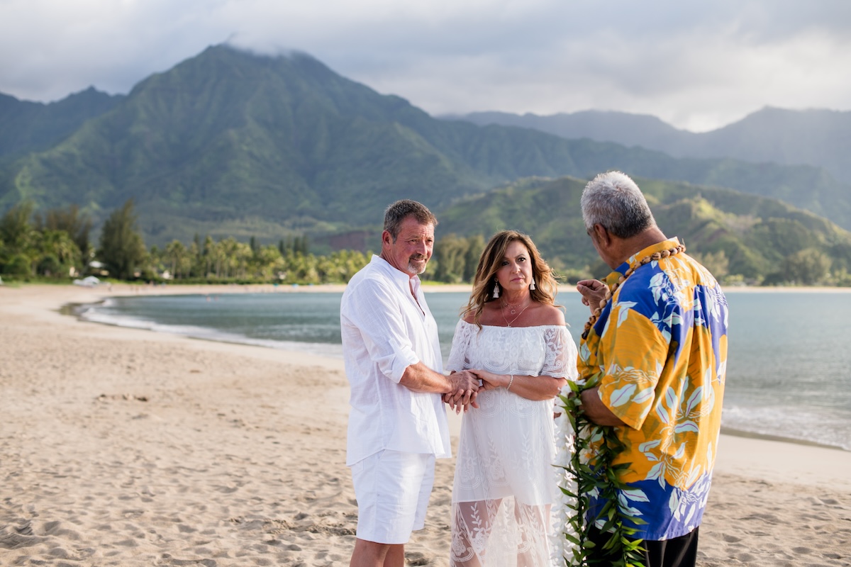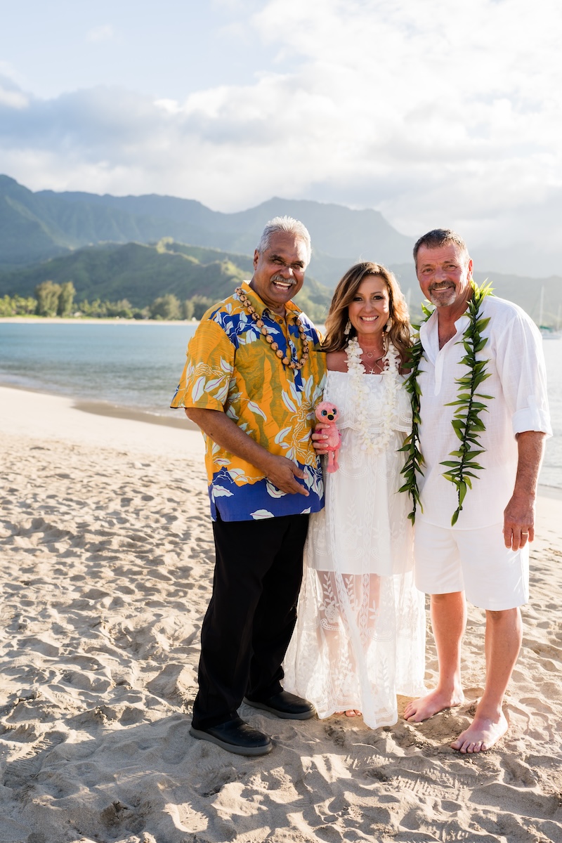 Such a beautiful vow renewal for Teresa & David on Hanalei Bay. It was a perfect day with Kahu Chuck officiating over their 20th wedding anniversary renewal of vows. Photos by Rachel Crain!