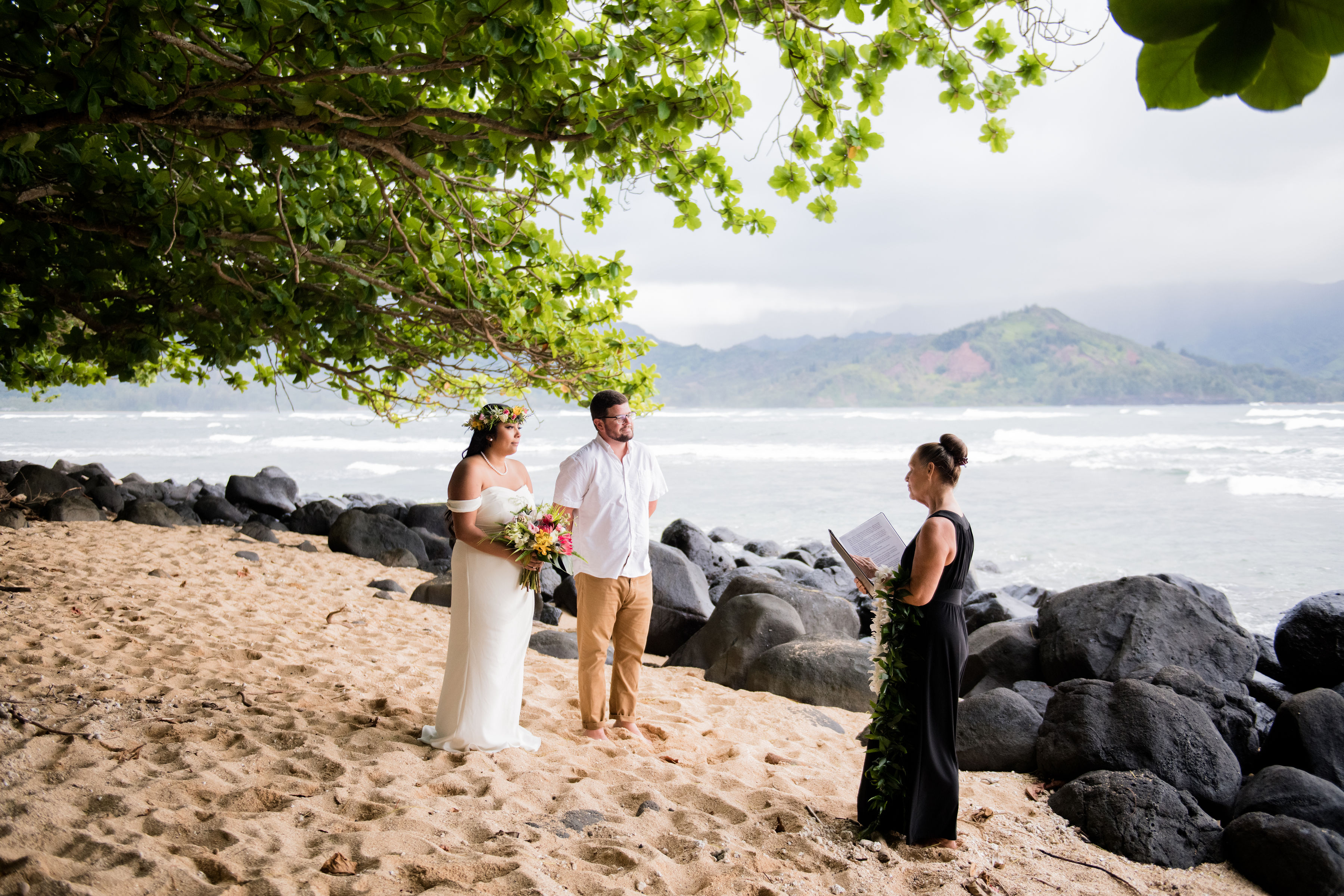 Our original plan was to have the big wedding in California with family but with Covid we had to postpone, but we happened to be in Kauai for a month so we were looking at eloping while out there. We did our own research at first and like most wedding planning, it was overwhelming, but eventually I came across Kauai Elopements and I'm so grateful that I did. They take care of all the important details so you can focus on enjoying the fun of it all, they provide questionnaires and different points of contact throughout to guide you along, and consistently check in to make sure you are comfortable and have any questions answered. They provide you a list of licensed officiants and photographers to choose from, along with other suggestions for add-ons if you're interested, or even just possibilities for things to do to celebrate after the ceremony. We selected Rachel Crane Photography and our pictures turned out amazing! Our officiant was Julie Wirtz and she was super helpful throughout the process as well and made sure to check in with us even before the ceremony. All in all, we were blown away by Jessica & Hailey's coordination and support. They couldn't have made it more perfect! :) If you are eloping in Kauai, Kauai Elopements is the way to go!