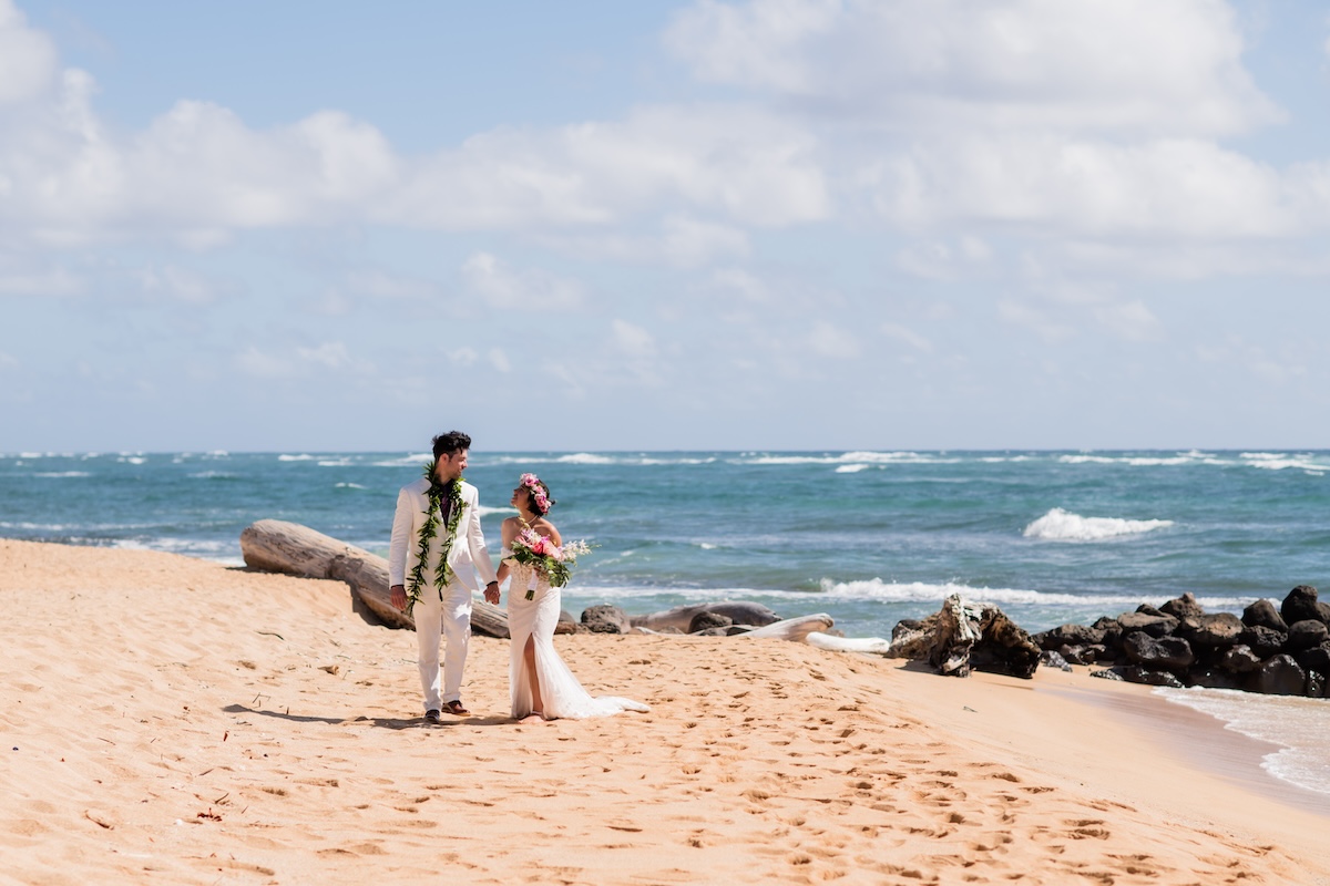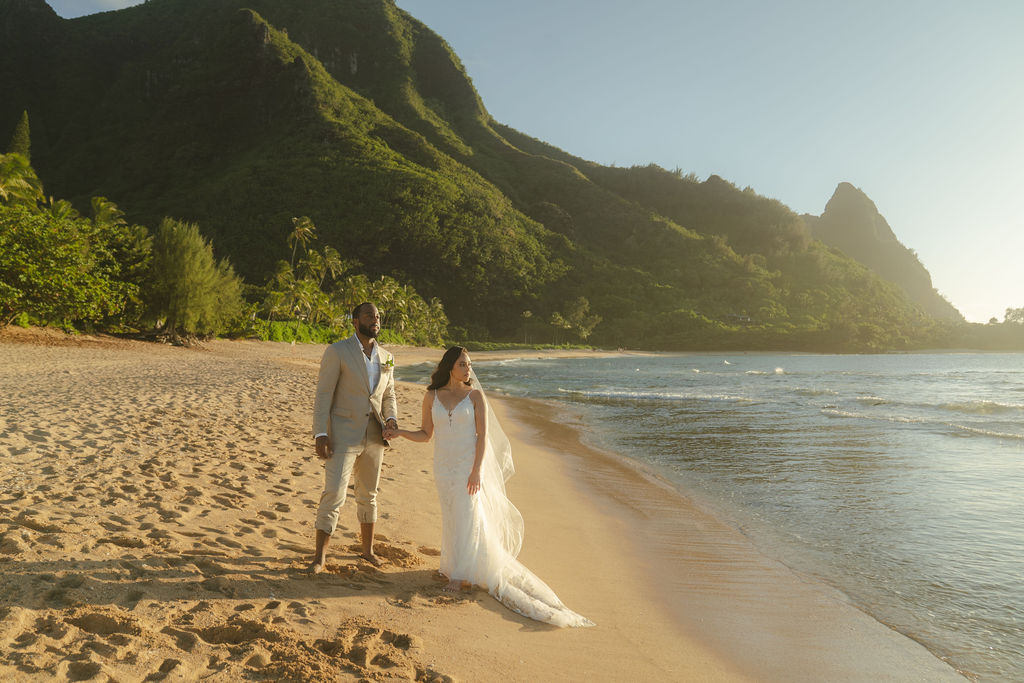 Kauai is one of the most beautiful locations in the world. With its serene beaches, powerful mountains and the spectacular Na Pali coast – we believe this is the best place in the world to have your wedding! The state of Hawaii only allows for up to 20 guests for a beach ceremony (The permit limit is 30 people- which included vendors). Guest counts over 20 can choose from one of our private location options.