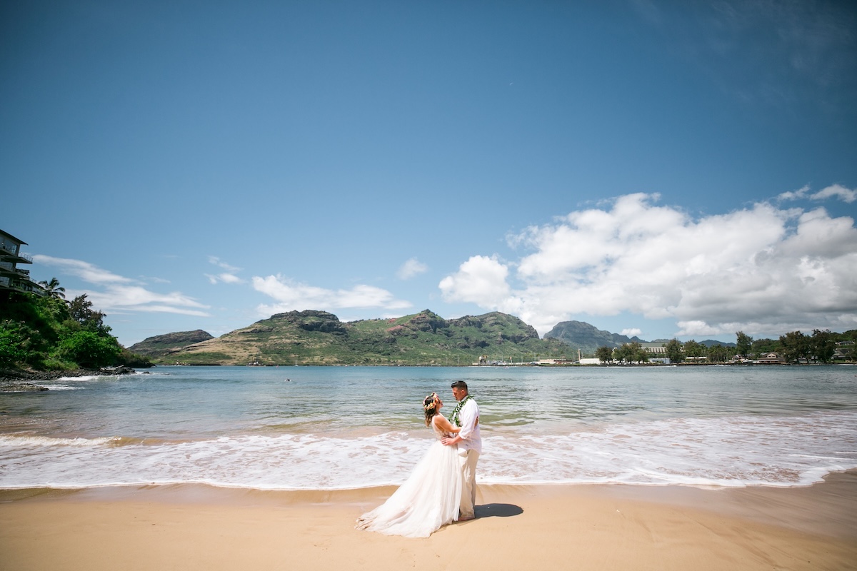 We suggest this location for weekday mornings. Evenings can be very crowded and we do not recommend this location for sunset timelines. Located on Kauai’s east side, below the Royal Sonesta, this conveniently located ceremony location is perfect for couples looking to stay closer to their resort.