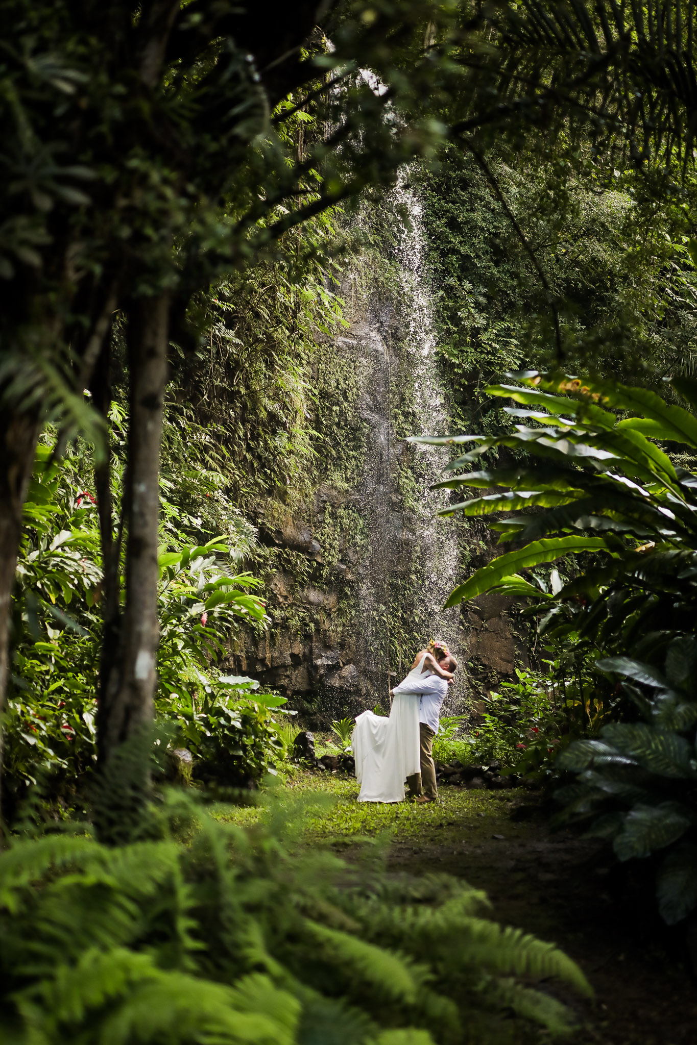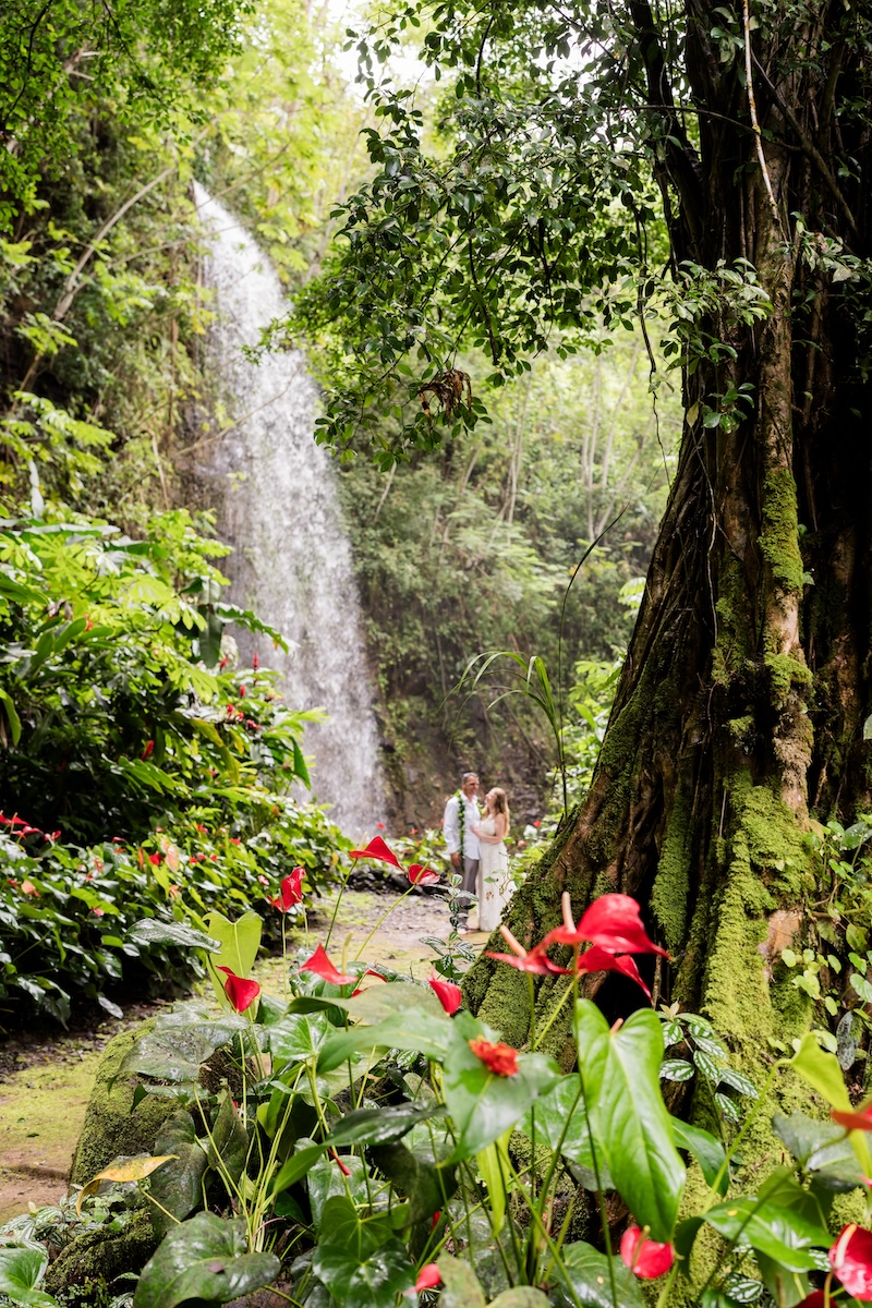 North Shore Kauai, Our waterfall is located on Kauai’s beautiful north shore. This is the ultimate location for a private, lush, tropical location. There is a site fee for this location. Ideal for parties of 10 guests or smaller.